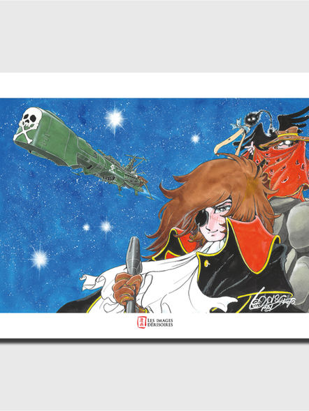 Affiche d'art signée par Leiji Matsumoto. Numérotée à 100 exemplaires. Imprimé en France sur du papier FEDRIGONI Tintoretto Gesso 300gr. 30x40cm.